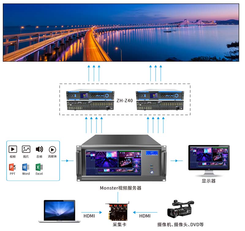 成人导航 ZH-Z900视频服务器是成人导航 为满足舞台、酒吧、多媒体展厅、会议室等不同应用场景LED大屏精心打造的一款集成播控服务器。最大支持8路3840x2160@60Hz超大分辨率点对点显示。可以实现功能超强的音视频播放、多场景编排功能,根据需求灵活配比,使用户管理便捷、操作简单,获得更好的应用使用效果。