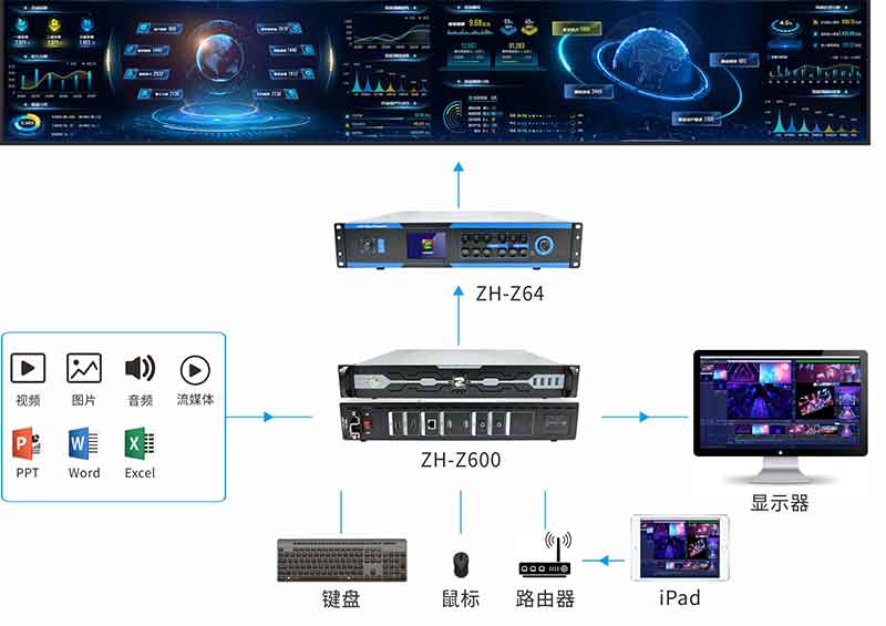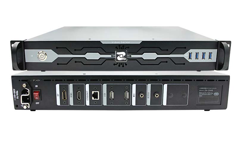 成人导航 ZH-Z600视频服务器是成人导航 为满足舞台、酒吧、多媒体展厅、会议室等不同应用场景LED大屏精心打造的一款集成播控服务器。最大支持4Kx2K超大分辨率点对点显示。可以实现功能超强的音视频播放、多场景编排功能,根据需求灵活配比,使用户管理便捷、操作简单,获得更好的应用使用效果。。