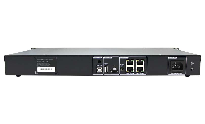 · 支持以下输出信号接口:LAN(RJ45)×4(带网口连接状态指示),整机最大支持分辨率为260万像素,支持自定义分辨率,最宽8192像素,最高4096像素;Audio音频(PJ35)×1;