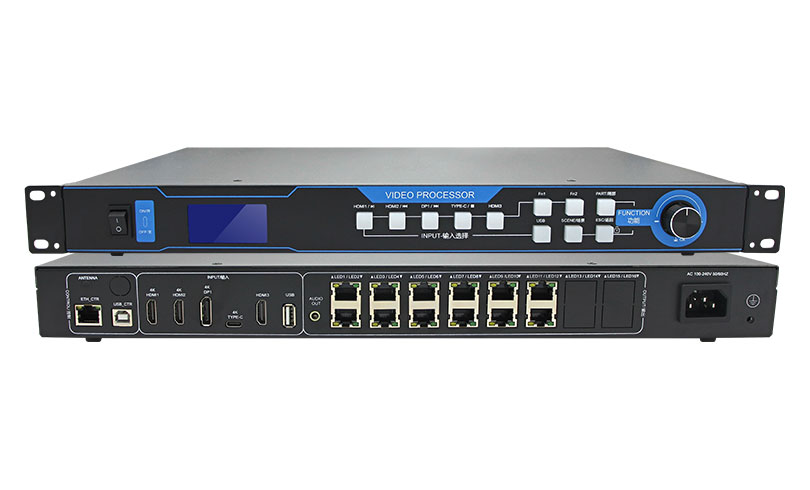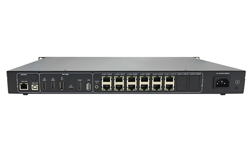 · 12个千兆网口输出,支持上下、左右任意拼接;