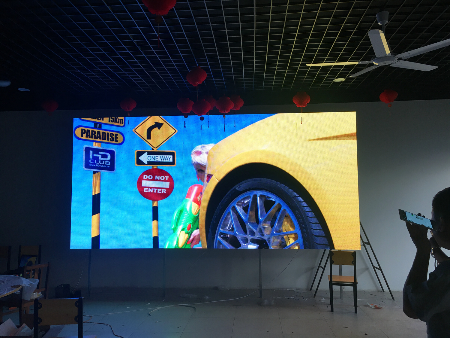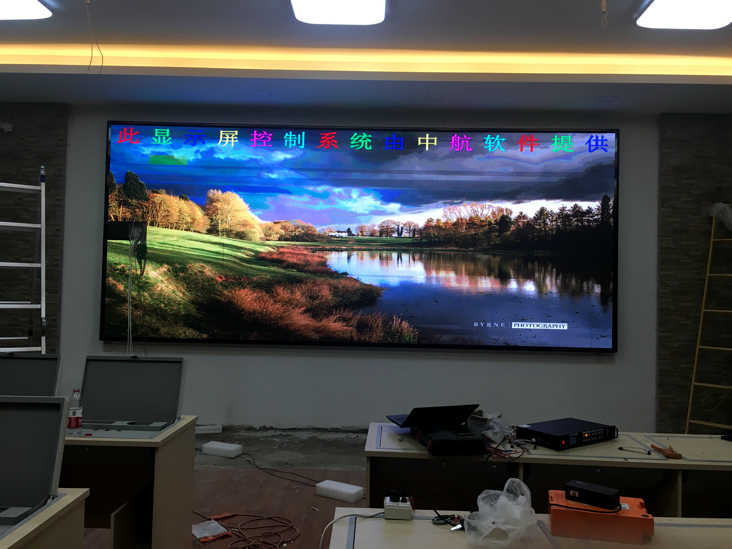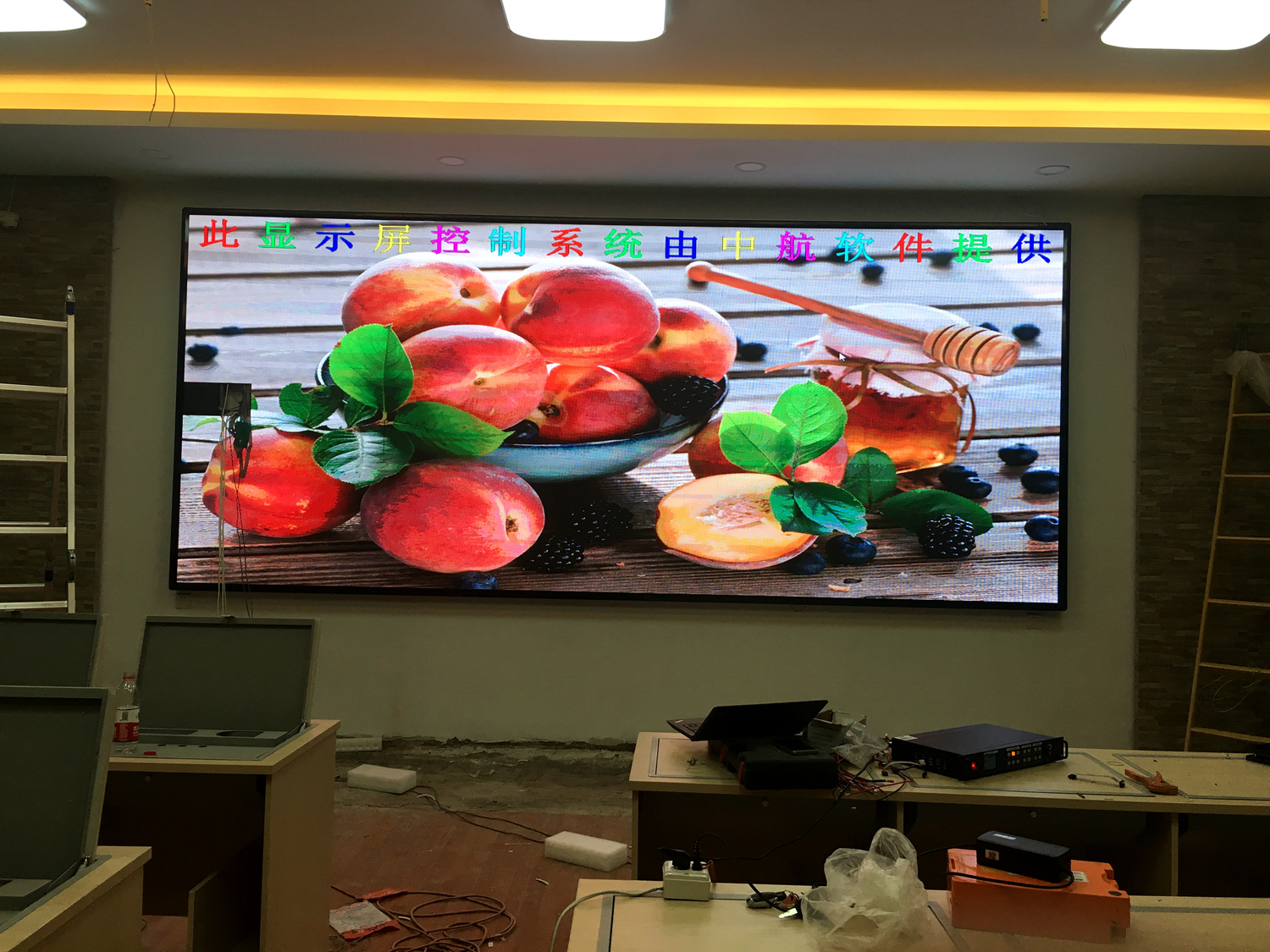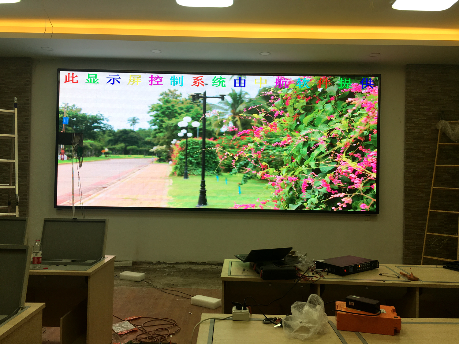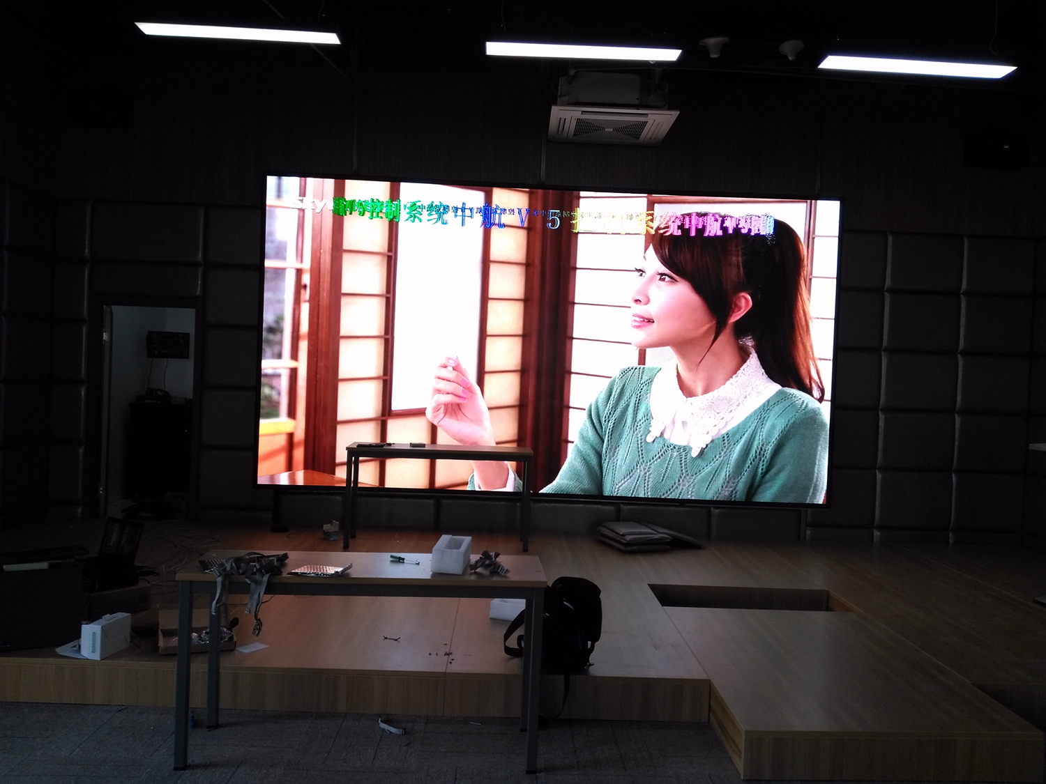 安徽省灵璧县某单位,P5总点数960*480,10张接收卡,一张发送卡,单卡最大带载192*256。感谢金时光电叶总对成人导航 的信任与支持!
