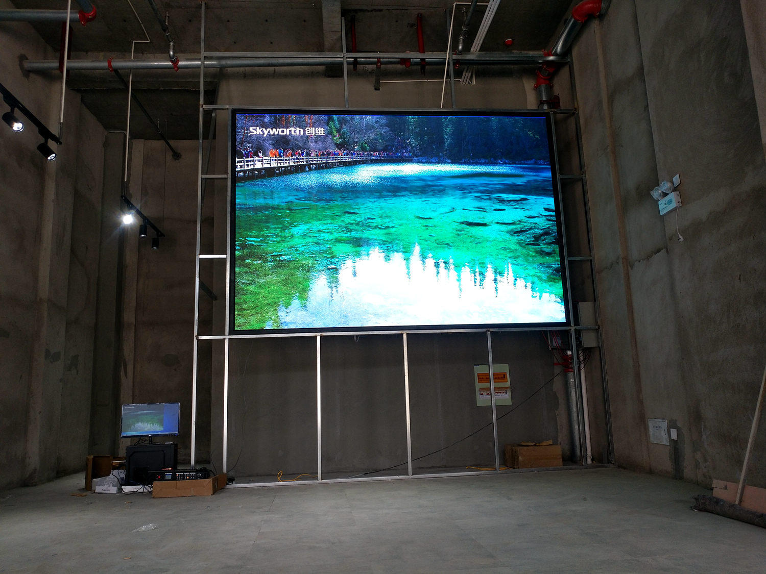 济南新华电脑学校,总点数1664*704,单卡最大带载128*704,1张发送卡,13张接收卡。感谢济南尚科光电郭总全心信任、全力支持!
