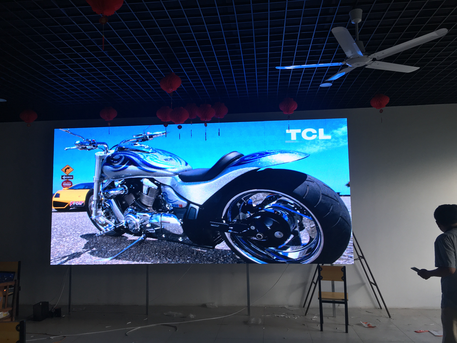 湖北省武汉市中宏显示展厅,室内p4,单卡带载256高192宽,1张发送卡,8张接收卡。成人导航 V5全彩系统,让效果证明实力!