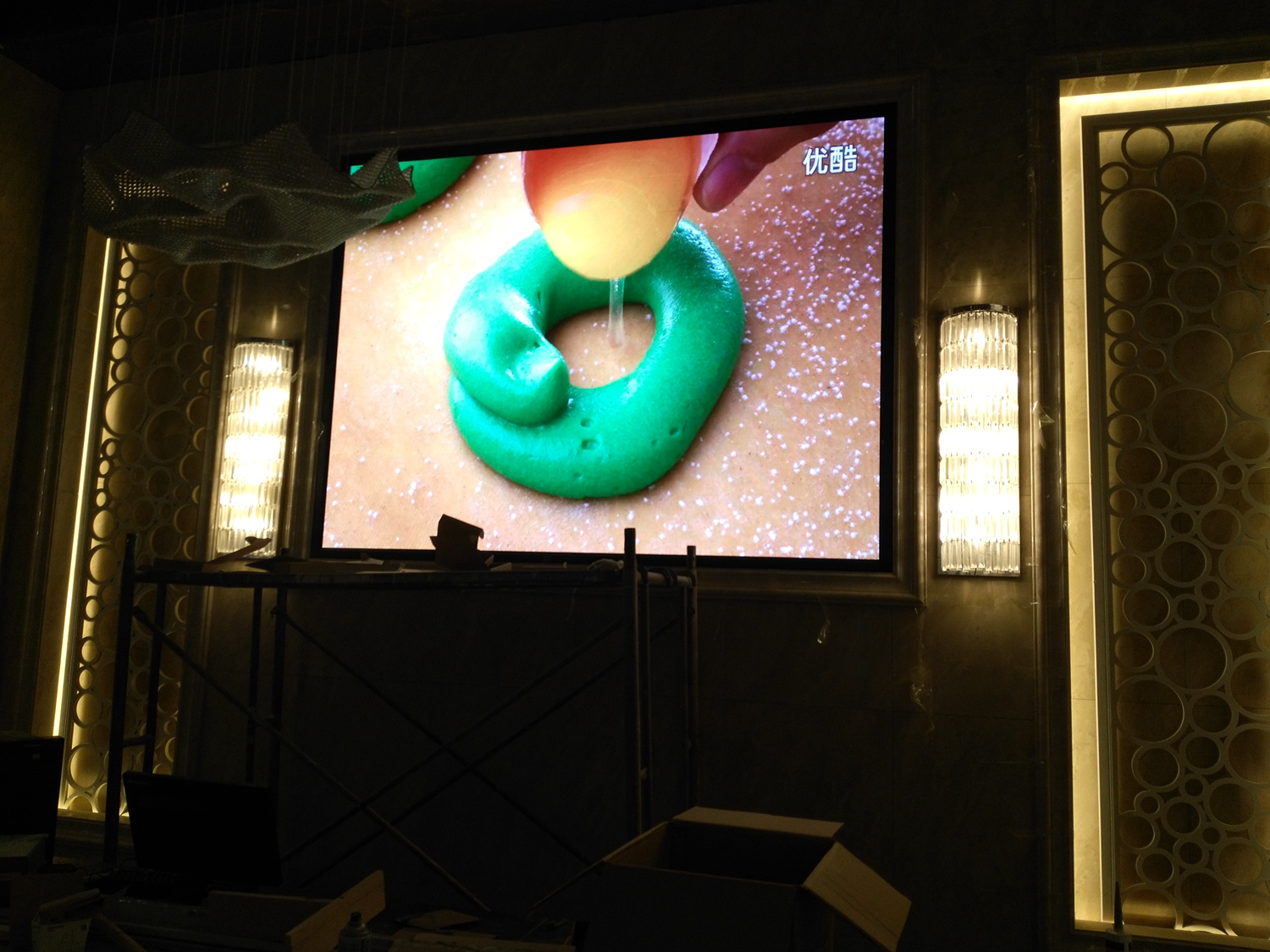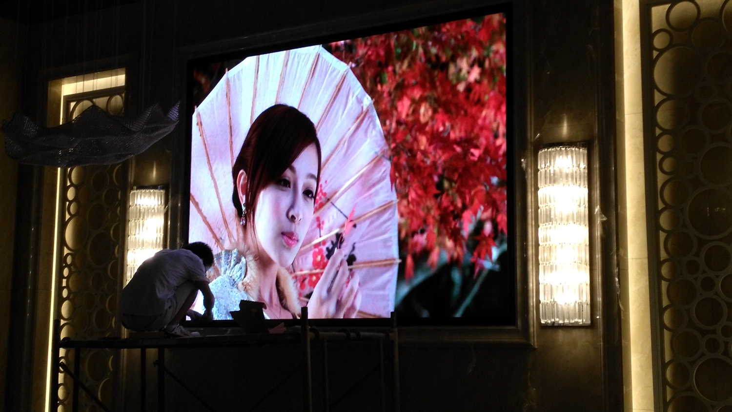 安徽省合肥市某饭店,P2.5总点数960*704,8张接收卡,一张发送卡,单卡最大带载128*704。感谢安徽荆涂光电孙总对成人导航 的信任与支持!