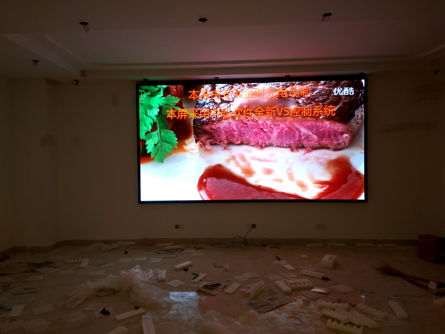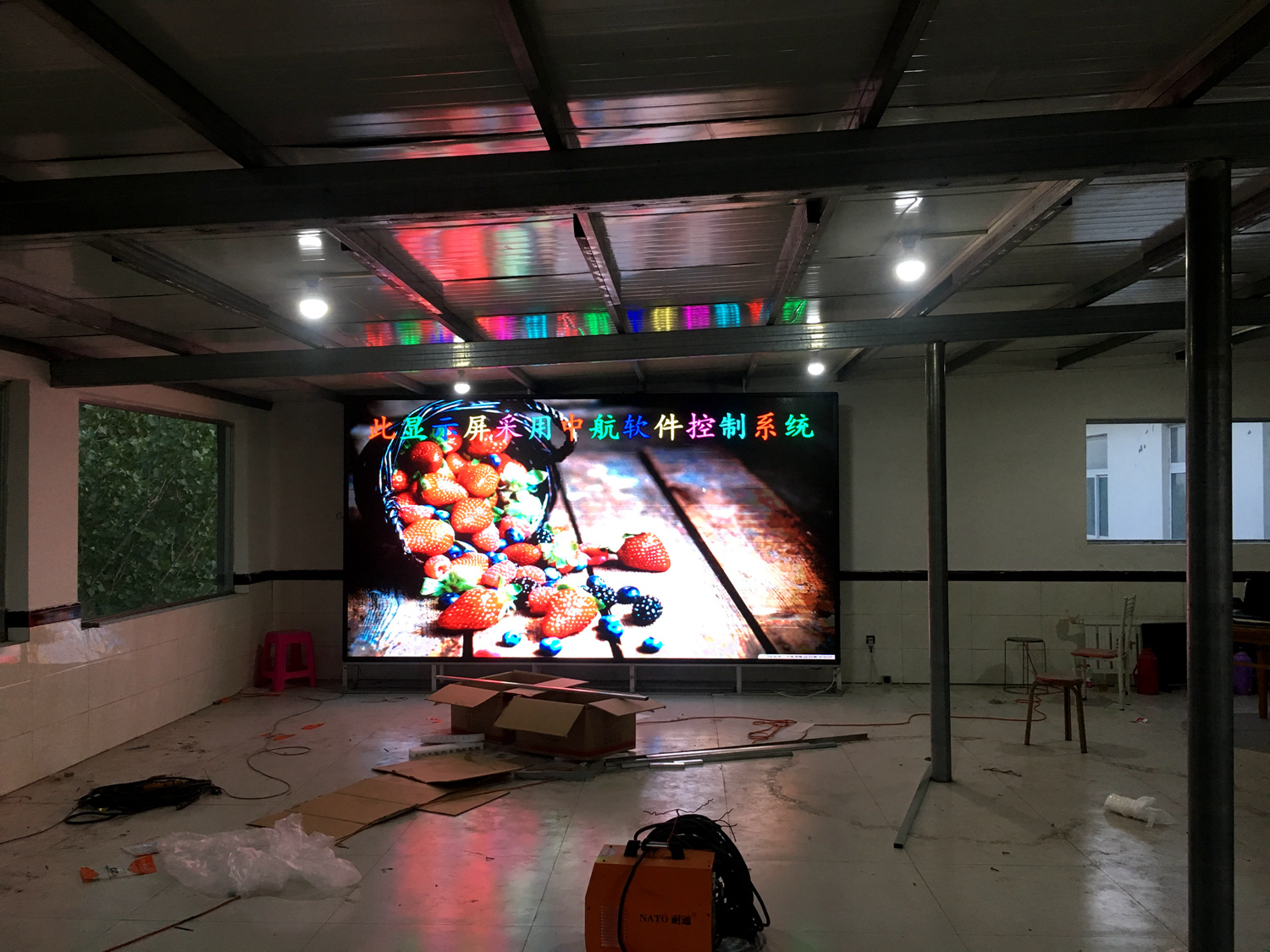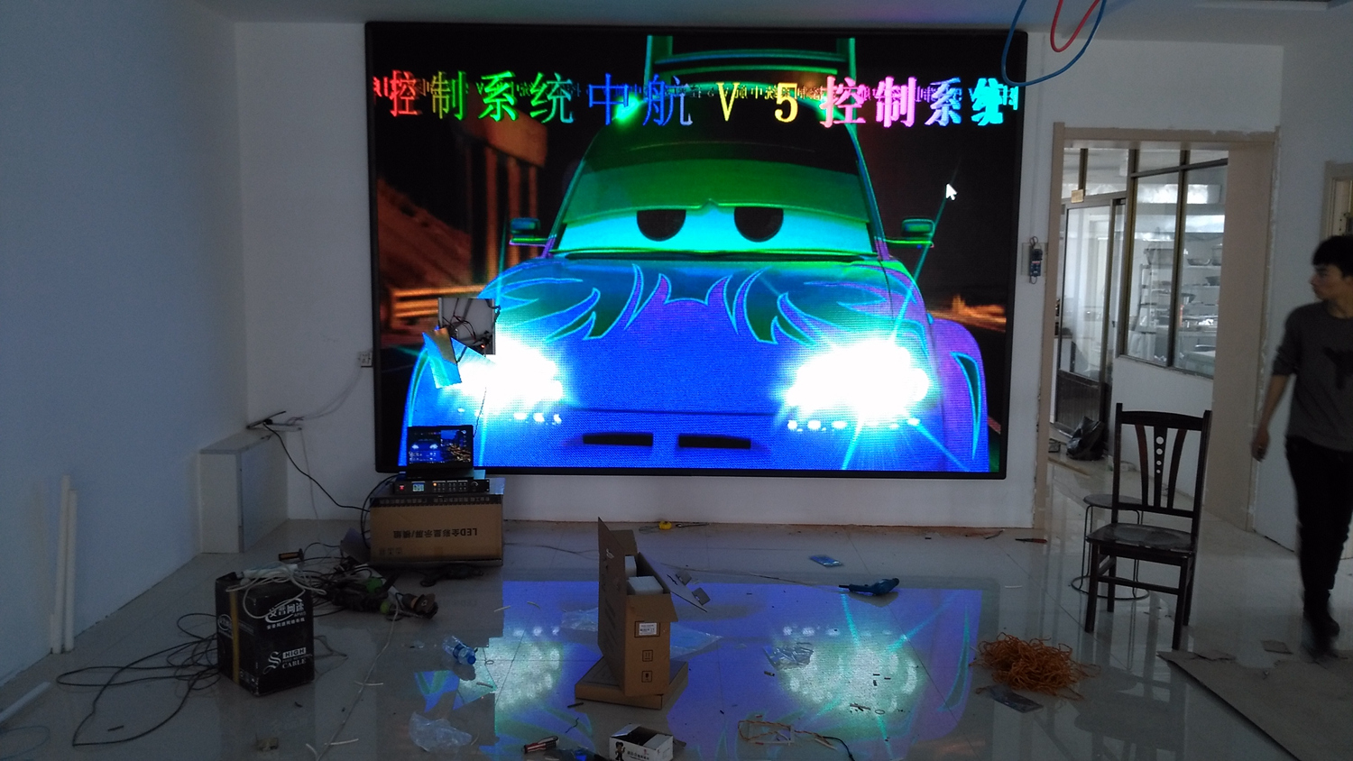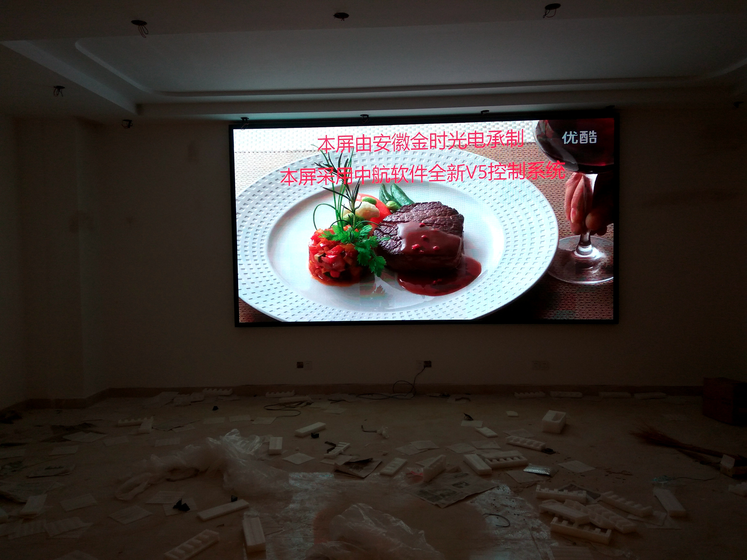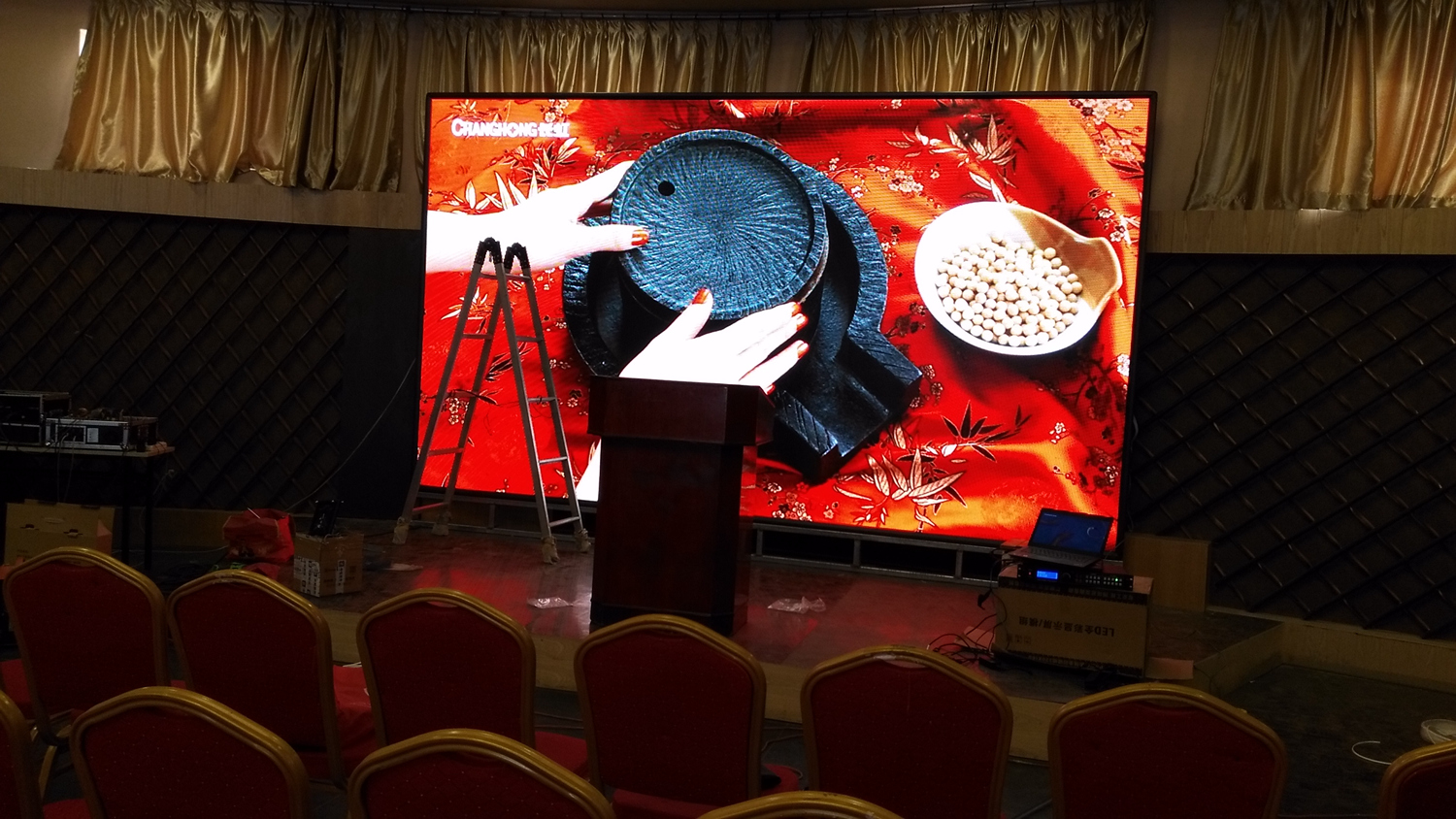 辽宁省铁岭市昌图县金家镇某饭店,户内p5单卡带载256高192宽,1张发送卡8张接收卡。成人导航 V5全彩系统,让效果证明实力!
