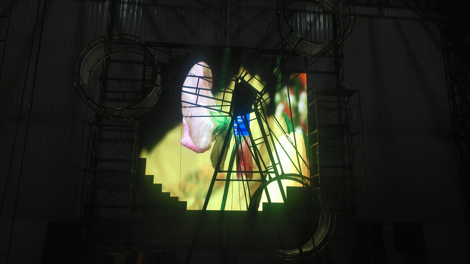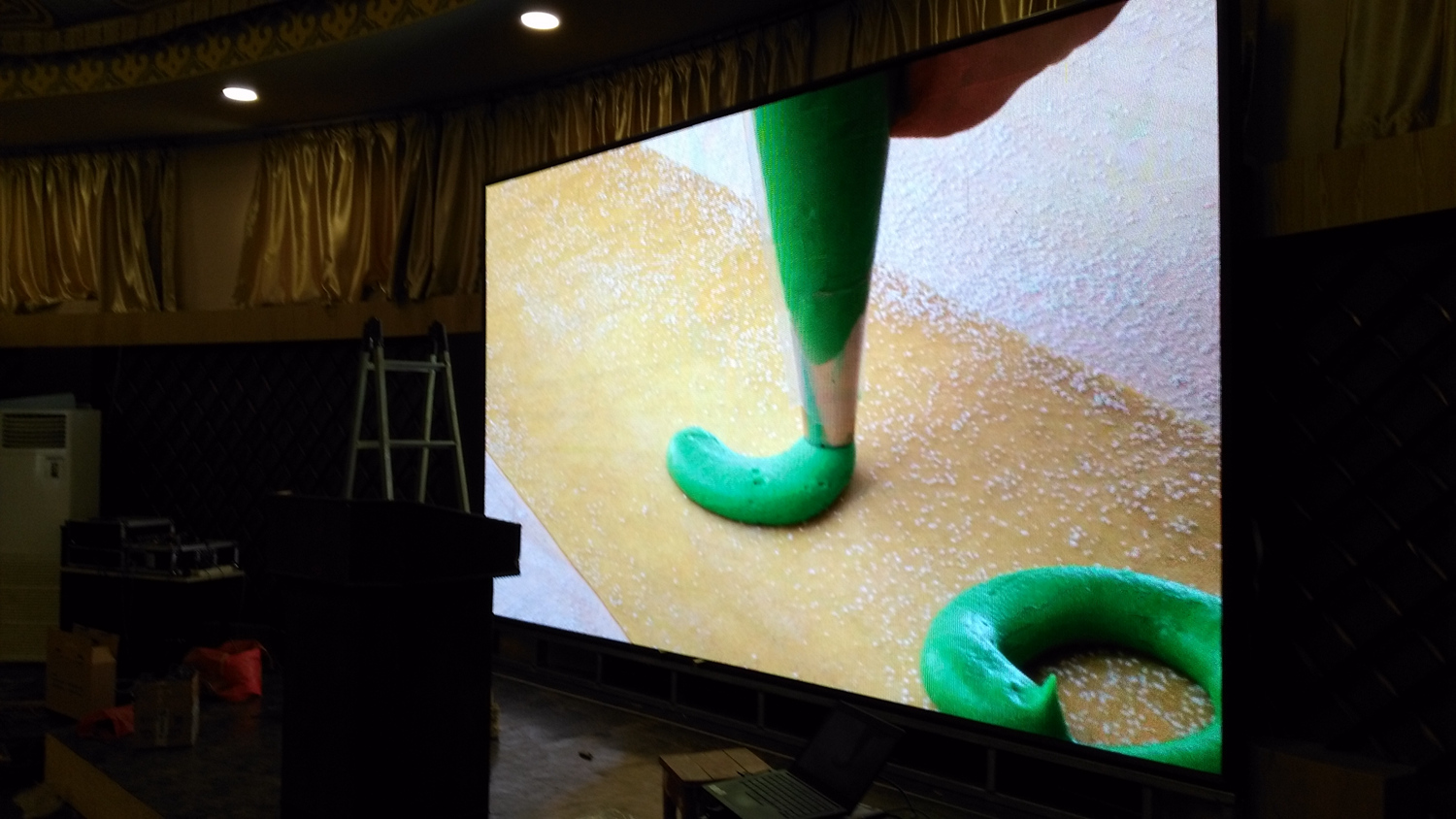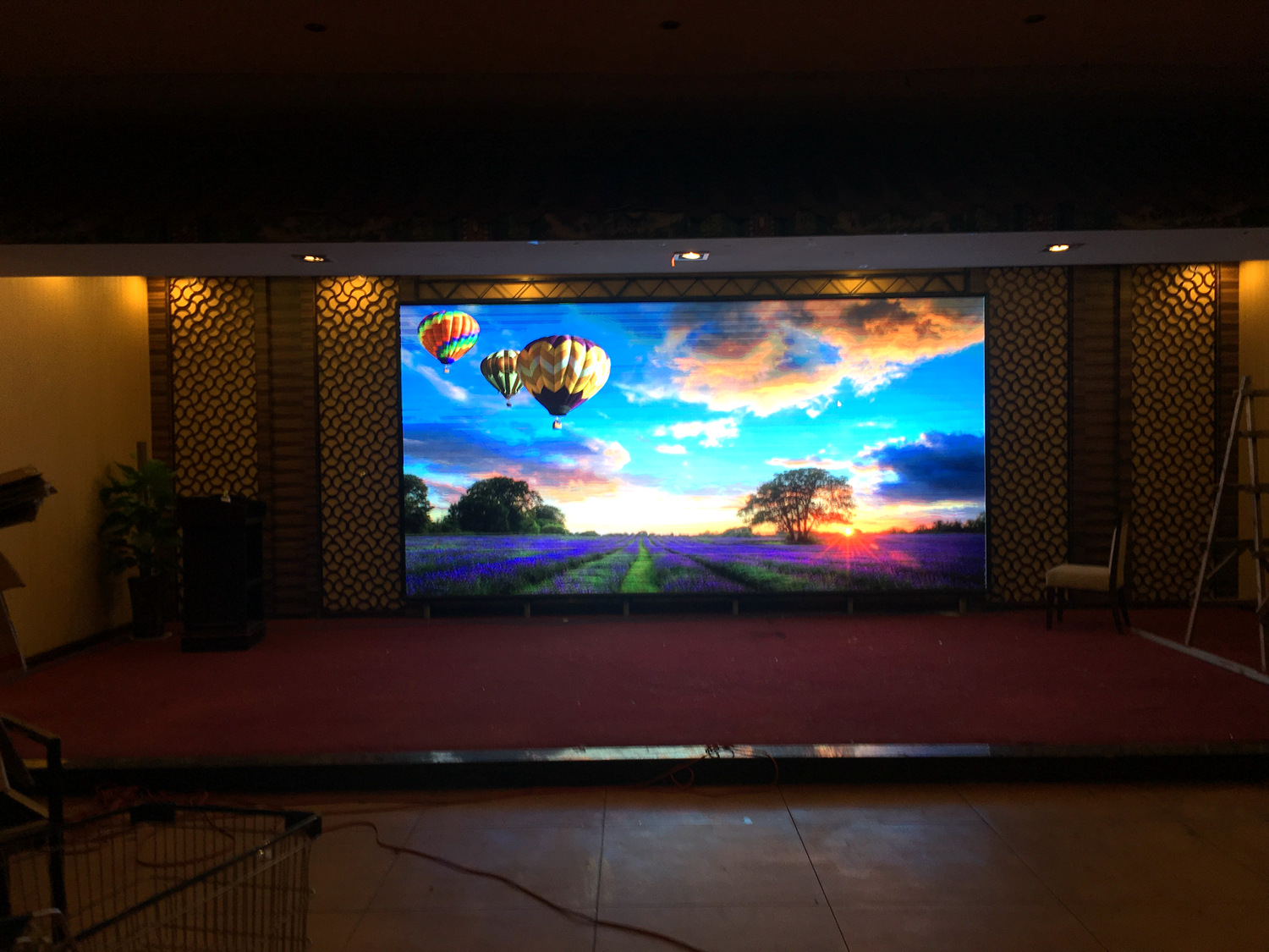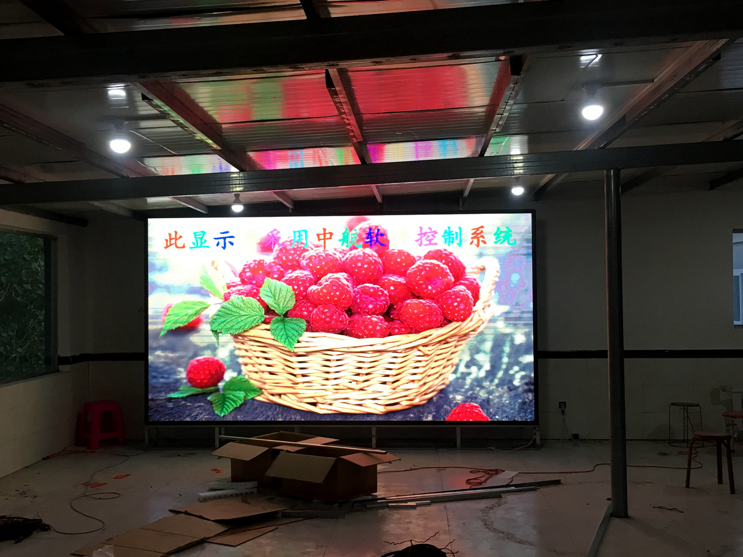辽宁省铁岭市昌图县金家镇某饭店,户内p5单卡带载256高192宽,1张发送卡8张接收卡。成人导航 V5全彩系统,让效果证明实力!