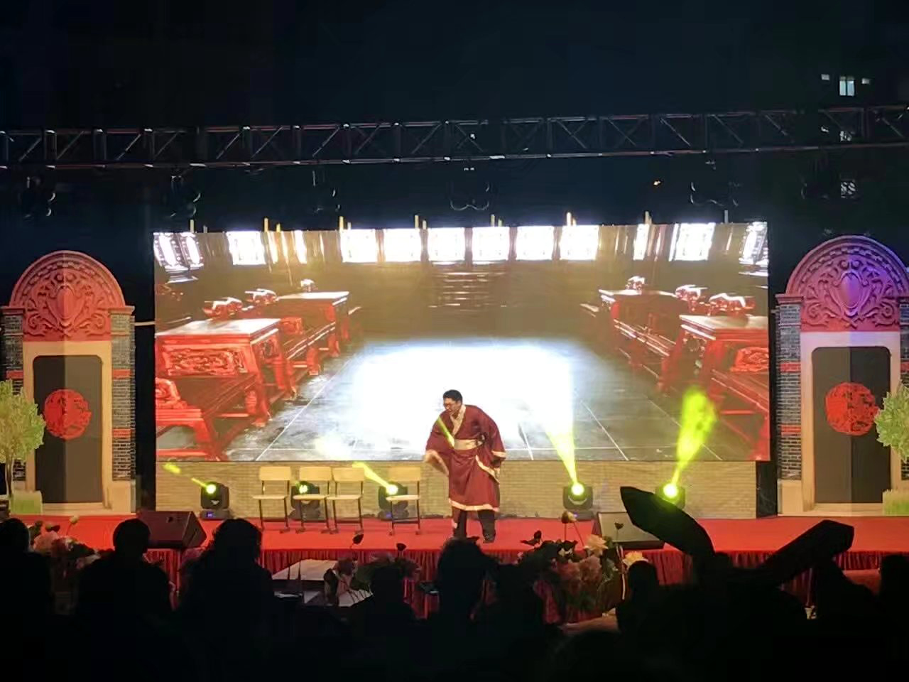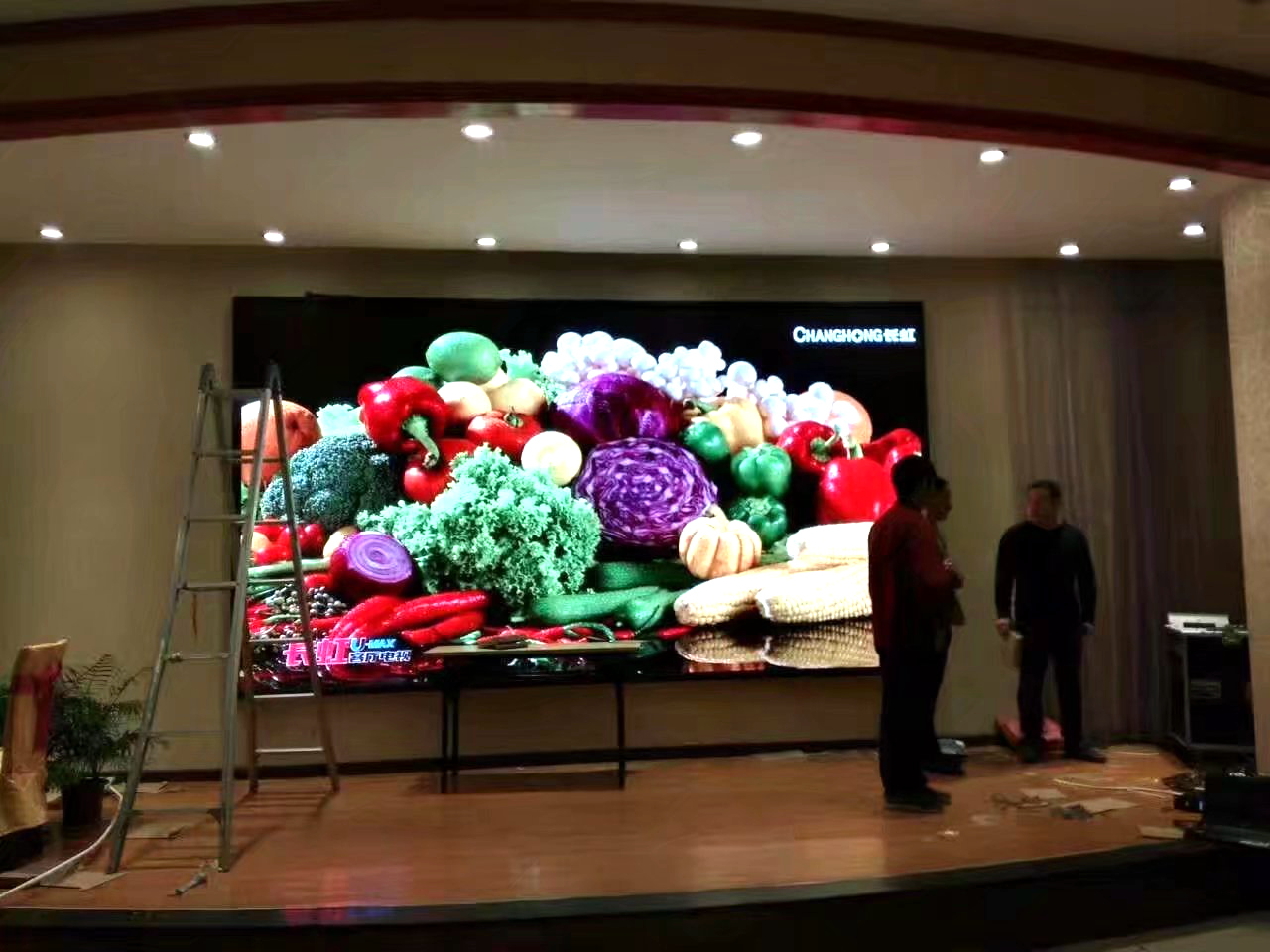 湖北省钟祥市某酒店,P4,总点数480*704,单卡最大带载256*192,8张接收卡,一张发送卡完美带载!