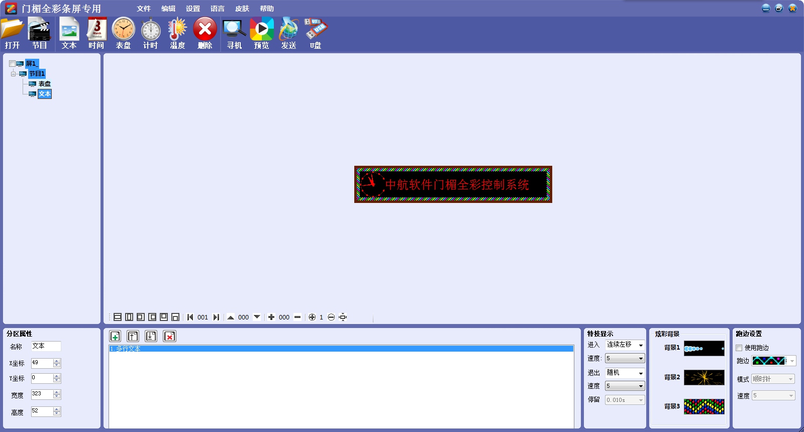 软件功能:Led Flash Play图文管理系统,多节目编辑/多区域显示/多种语言版本。
