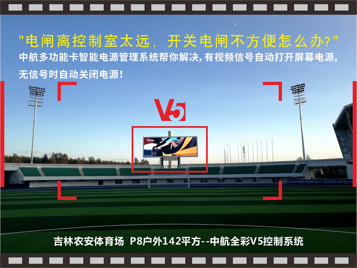 【成人导航 V5精品案例选集】:“电闸离控制室太远,开关电闸不方便怎么办”?成人导航 多功能卡智能电源管理系统帮你解决,有视频信号自动打开屏幕电源,无信号时自动关闭电源!吉林农安体育场,P8户外142平方,成人导航 全彩系统完美点亮。感谢长春科美李总对成人导航 的大力支持,我们会努力做的更好!