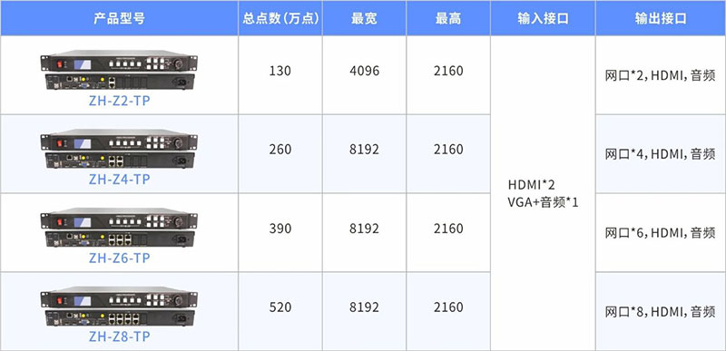 产品特点· 最大带载520万点,最大宽度:8192,最大高度:2160的LED显示屏;