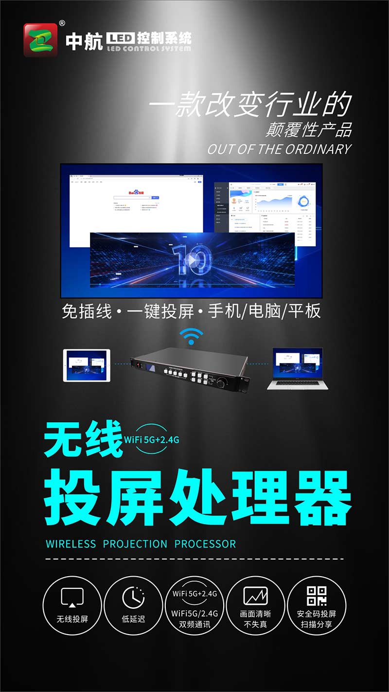 专为会议室、教室等LED显示屏开发的一款无线投屏互动系统,可直接连接LED大屏幕,同时支持HDMI高清输出连接液晶屏或会议平板等。可以把演讲者手机、电脑的音视频内容无线实时传输给显示屏,声音输出给音响。可实现观众与演讲者之间,或者观众与观众之间信息的无线实时交互。