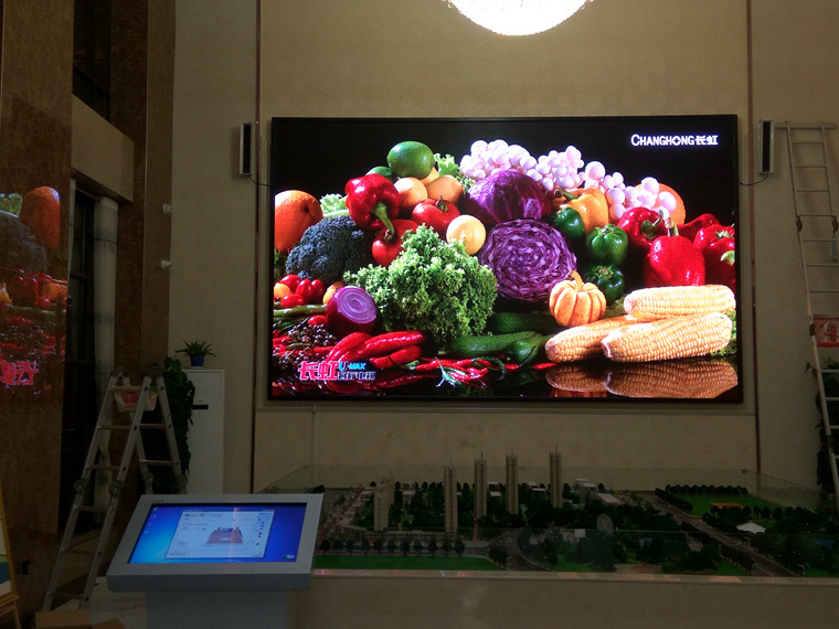 安徽省怀远县柏林春天售楼部,P4总点数1216*736,单卡最大带载192*384,14张接收卡,1张发送卡完美带载!