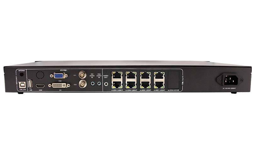 3. The following output signal interface is supported: LAN(RJ45)×8 (with network interface connection status indicator). The maximum resolution of the machine is 5.2 million pixels, support resolution customization. Pixels support: the Max width is 8192 and Max width is 2160.